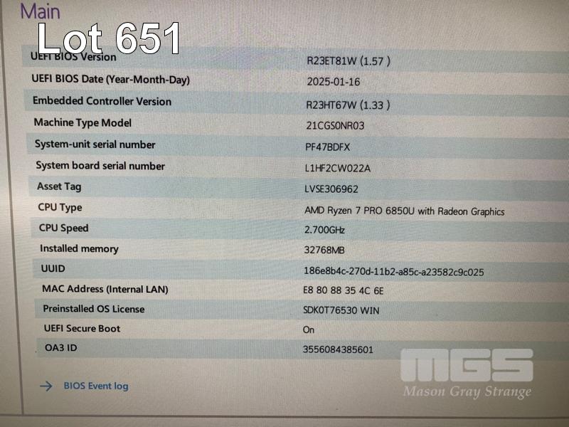 2 x LAPTOPS INC - LENOVO THINKPAD T14 GEN3, TYPE 21CG, AMD RYZEN 7 PRO 6850U @ 2.7GHz, 32GB RAM, 1TB NVMe M.2 SSD (DAMAGED SCREEN) - LENOVO THINKPAD T14, TYPE 20UE, AMD RYZEN 7 PRO 4750U @ 1.7GHz, 16GB RAM, 512GB NVMe M.2 SSD (DAMAGED SCREEN) (NO USB-C POWER SUPPLIES) S/N:PF47BDFX, PF2KVWLD