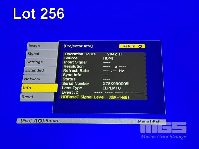 LASER PROJECTOR, EPSON EB-L1495U WUXGA 3LCD, 9,000 LUMENS, ELPLM10 LENS, 2,942 HOURS SHOWING WITH REMOTE S/N:X78K990005L