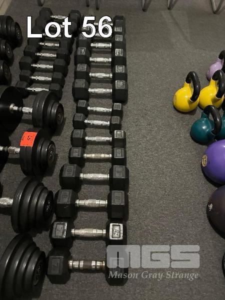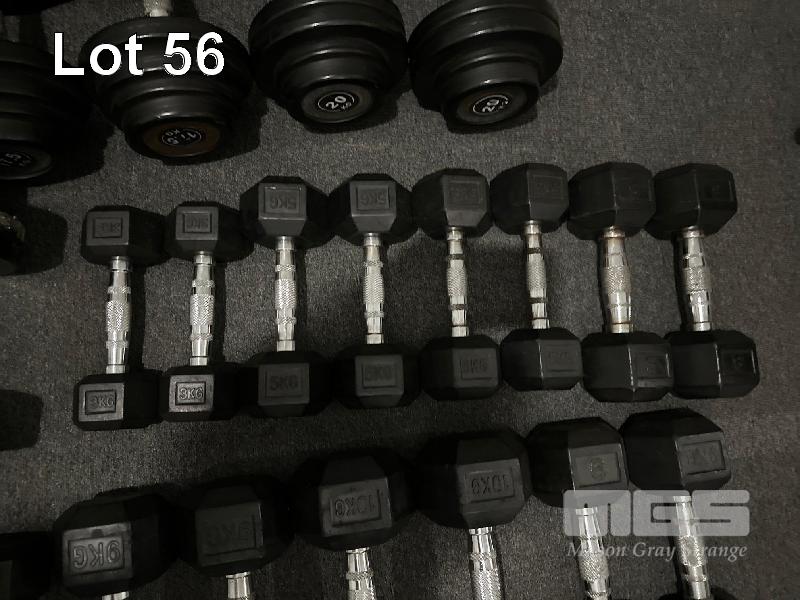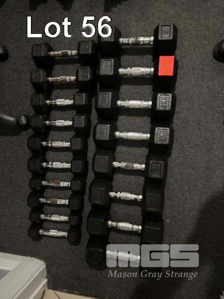 40 x RUBBER COATED DUMBBELLS, 1kg - 9kg