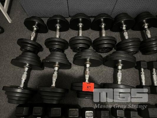 12 x RUBBER COATED DUMBBELLS 12kg - 25kg