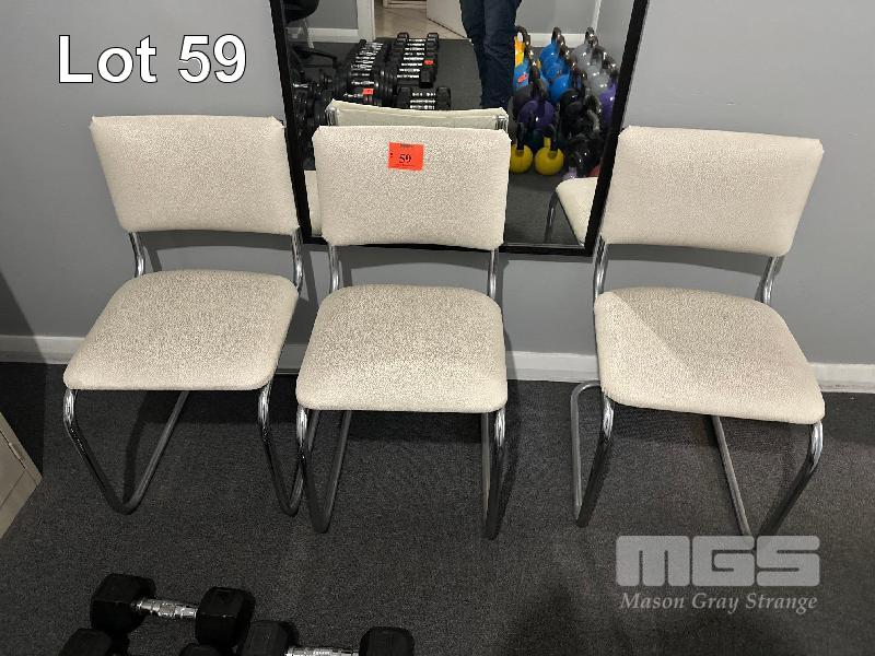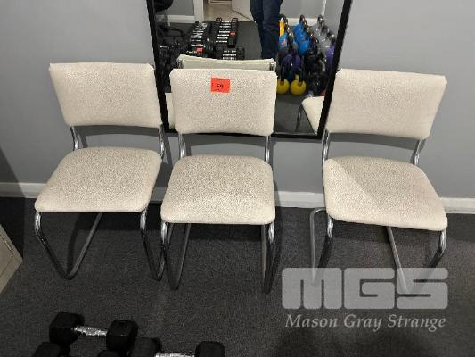 3 x CUSHIONED STOOLS 3 x RECEPTION CHAIRS, WHITE VINYL