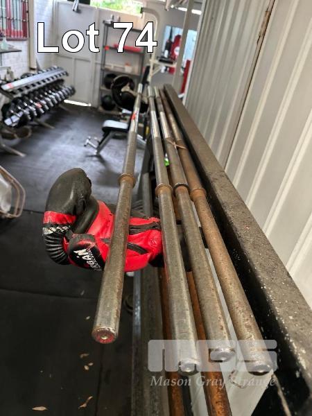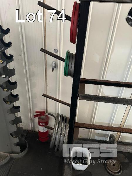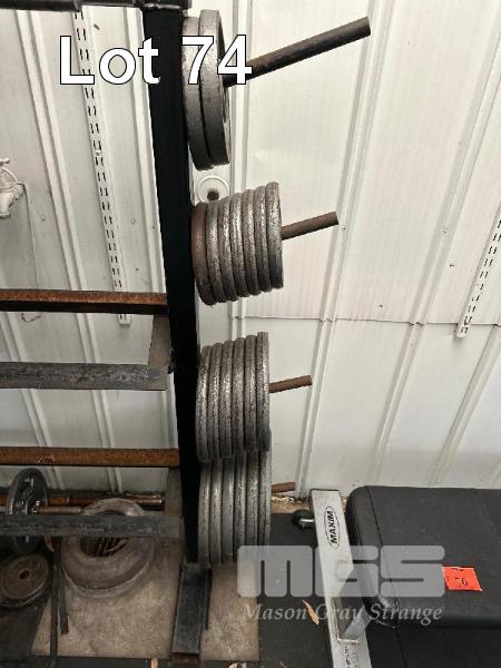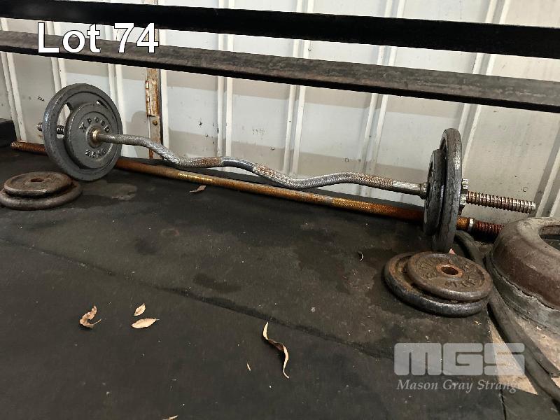 5 x 10kg BARBELLS, 1 x PREACHER CURL 35 x STEEL PLATES, 1.25kg - 10kg