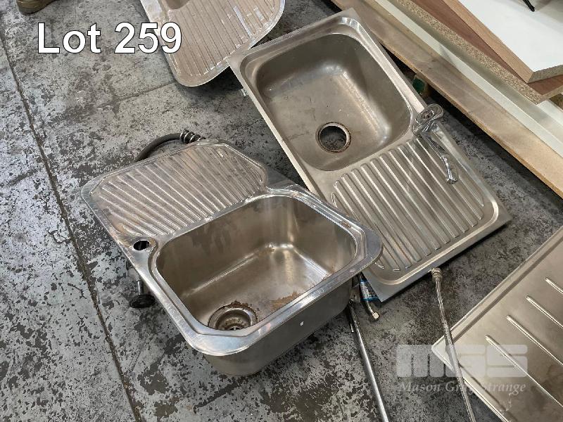 2 x TWIN BOWL STAINLESS STEEL SINKS 2 x SINGLE BOWL STAINLESS STEEL SINKS 1 x HAND WASH BASIN, WALL MOUNT