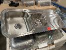 2 x STAINLESS STEEL, TWIN BOWL SINKS, 1180 x 480mm WITH FITTINGS AS NEW