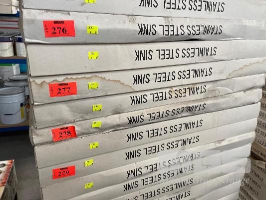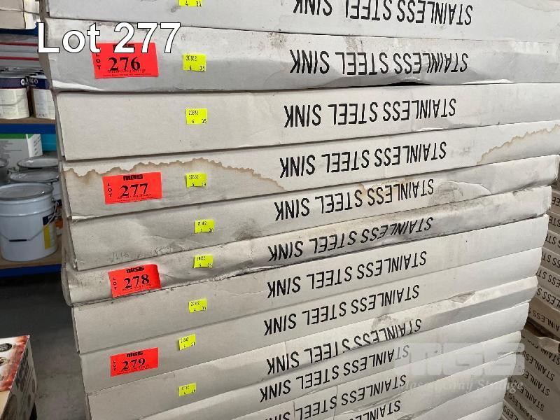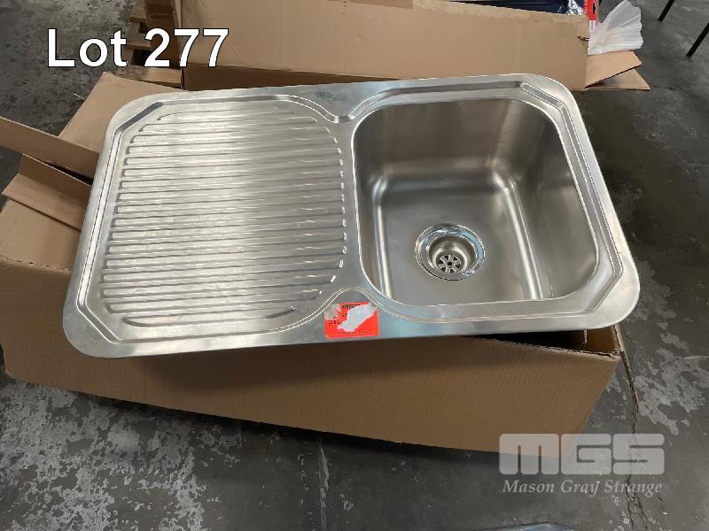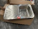 2 x STAINLESS STEEL, SINGLE BOWL SINKS, 775 x 480mm WITH FITTINGS AS NEW
