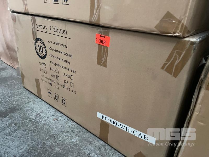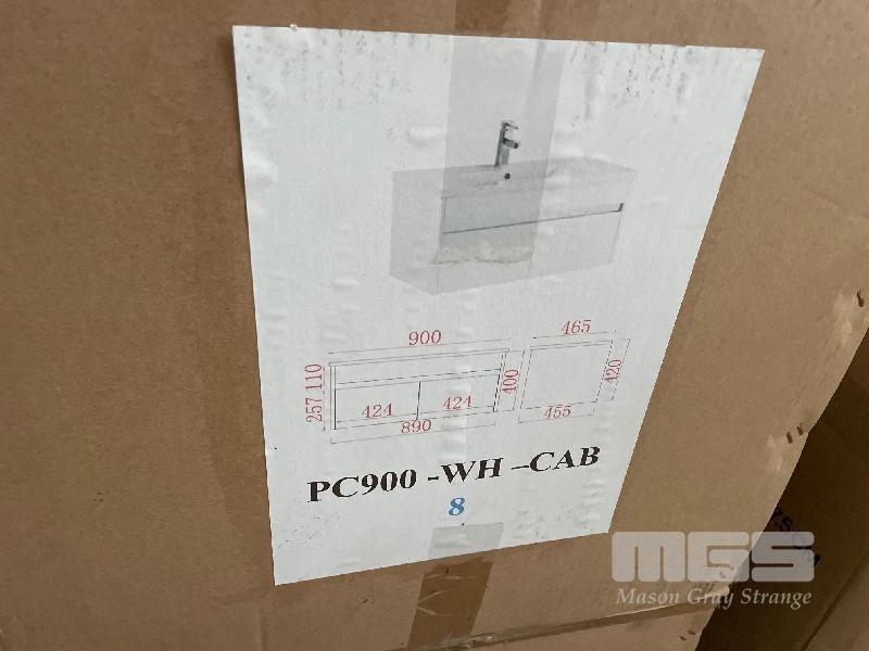 WALL MOUNT BATHROOM VANITY (CABINET ONLY) WHITE 2 DRAWER, 900 x 465 x 420mm NEW IN BOX!