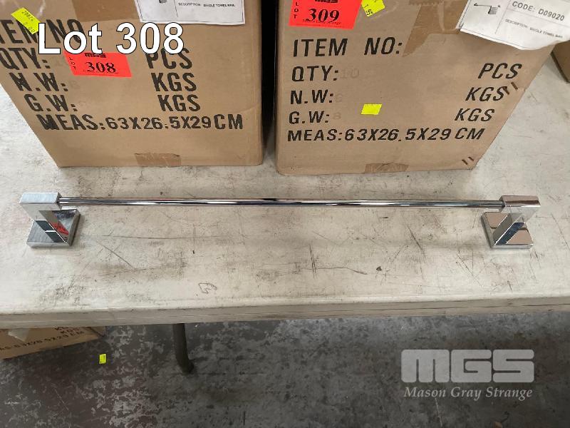 10 x SINGLE TOWEL RAILS, CHROME, WITH HARDWARE AS NEW, 1 x BOX