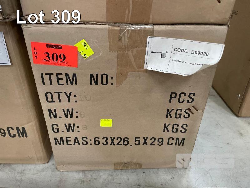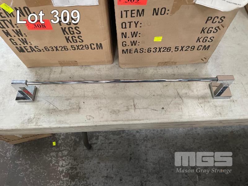 10 x SINGLE TOWEL RAILS, CHROME, WITH HARDWARE AS NEW, 1 x BOX