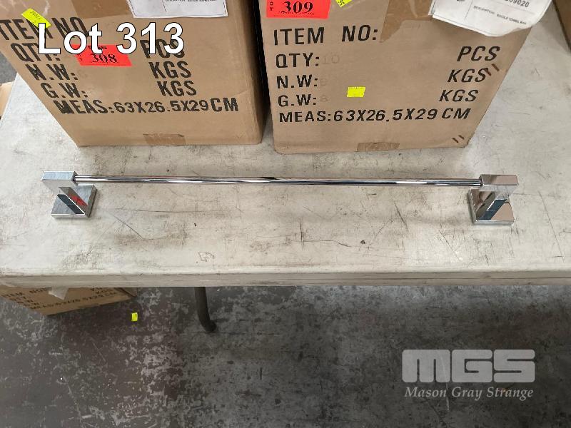 10 x SINGLE TOWEL RAILS, CHROME, WITH HARDWARE AS NEW, 1 x BOX