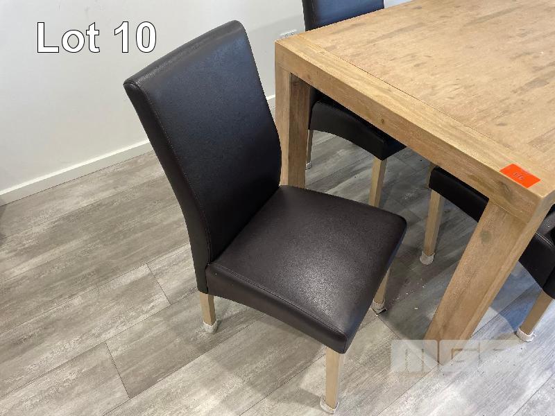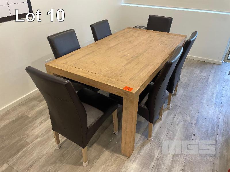 TIMBER DINING TABLE, 1800 x 1000mm WITH 6 x VINYL CHAIRS, TIMBER LEGS, BLACK & 3 x VISITORS CHAIRS
