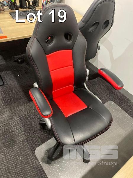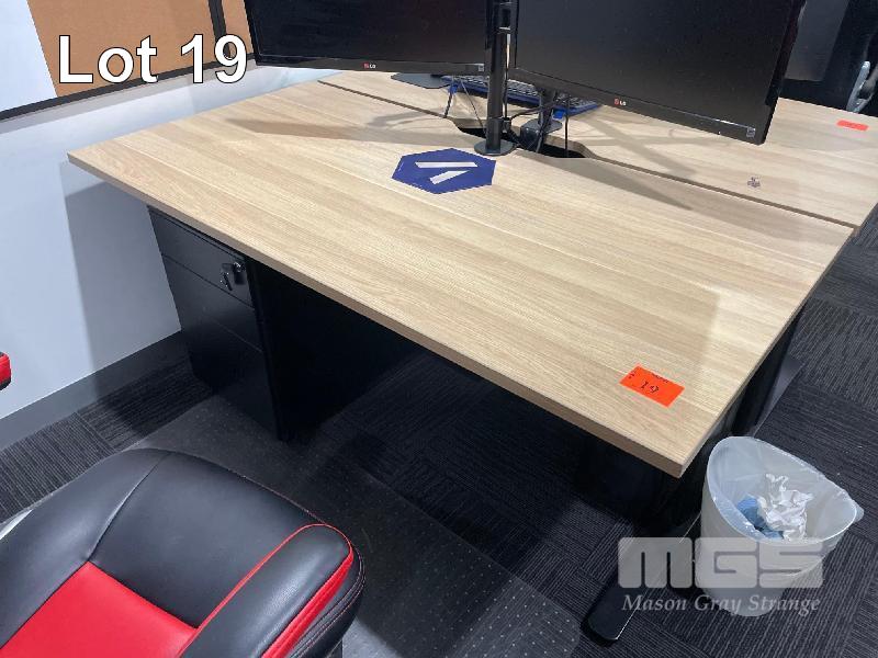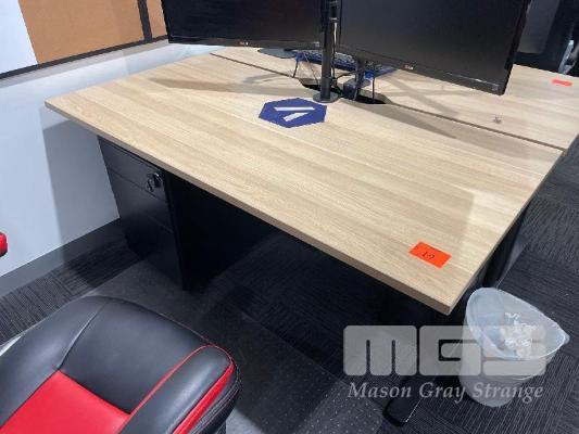 DESK, PINE LAMINATE TOP, BLACK STEEL FRAME, 1500 x 750mm + GAS LIFT CHAIR, RED & BLACK VINYL, 3 DRAWER UNDER DESK MOBILE