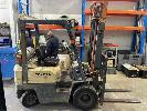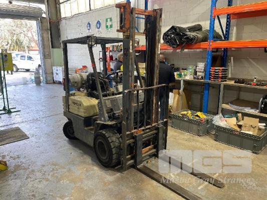 TOYOTA FORKLIFT, MOD: 02-5FG15, LIFT CAP: 1350kg, HRS: 7,404, LPG WITH SIDE SHIFT, SOLID FRONT TYRES, REAR PNEUMATIC TYRES, NOTE: ROUGH BUT RUNS, DRIVES & LIFTS