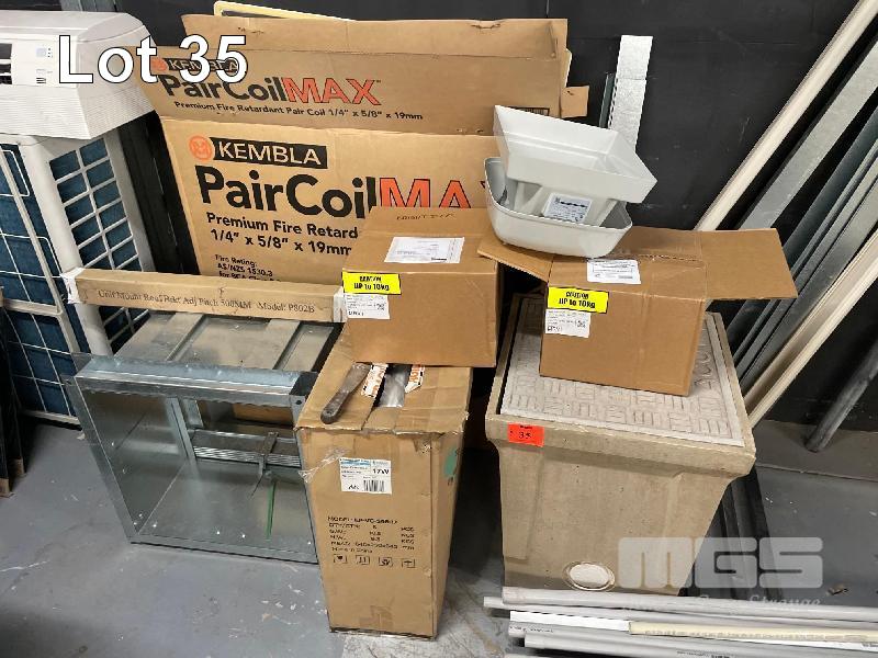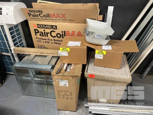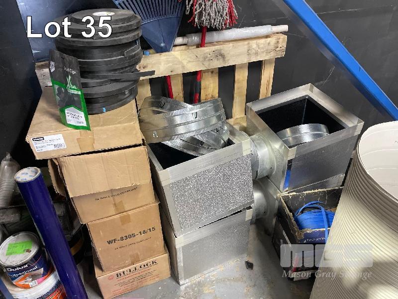 AIR CONDITIONING PARTS, DAKIN A/C UNIT, ASSORTED VENTS, PIT COVER, DUCT HANGERS, DUCTING FITTINGS