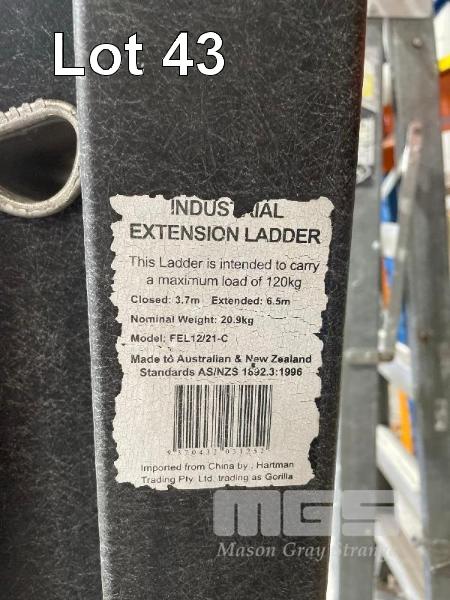 GORILLA FIBER GLASS EXTENSION LADDER, 3.7m - 6.5m