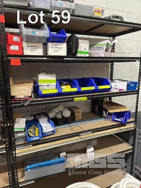 CONTENTS 2 BAYS SHELVES, ELECTRICAL COMPONENTS, SADDLES, THREADED ROD, ASSORTED HARDWARE, CB'S ETC.