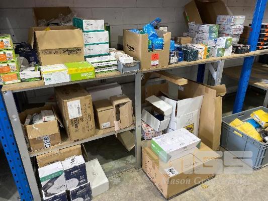 ASSORTED ELECTRICAL COMPONENTS, LIGHTS, LED ENCLOSURES, SWITCHES, WEATHER PROOF EMERGENCY LIGHTS, LED PANELS LIGHTS ETC.