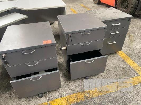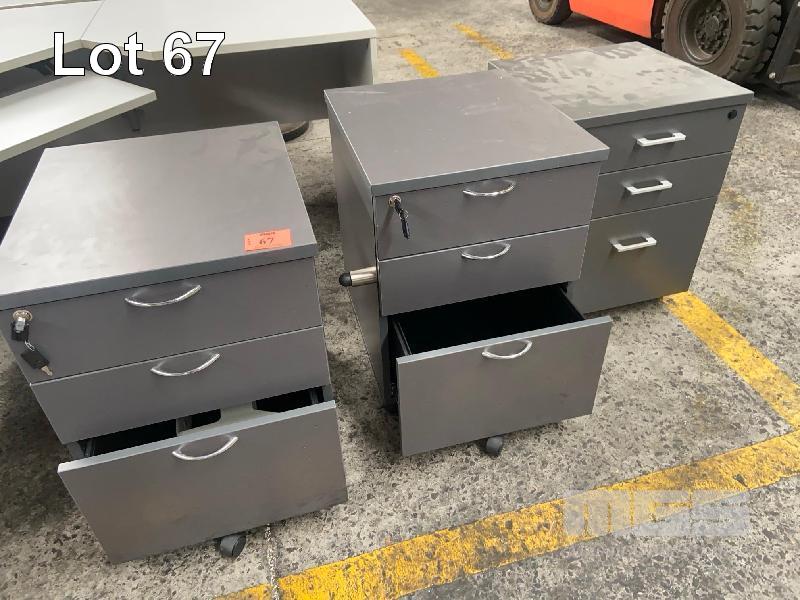 3 x 3 DRAWER MOBILES, TIMBER LAMINAE, DARK GREY WITH KEYS, 2 x SETS