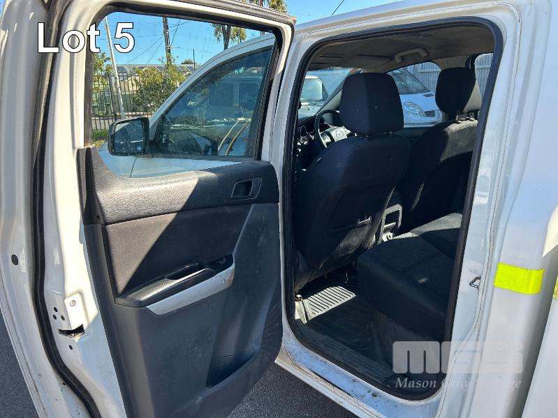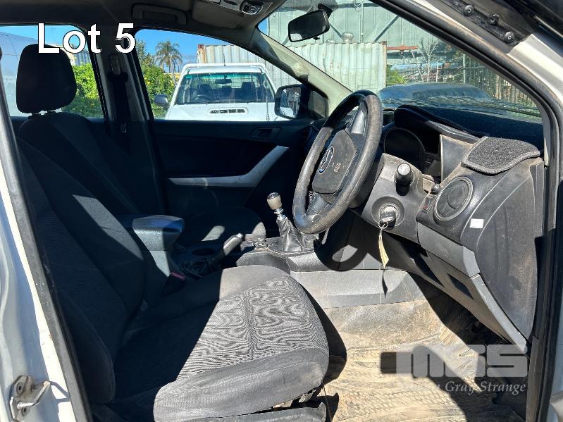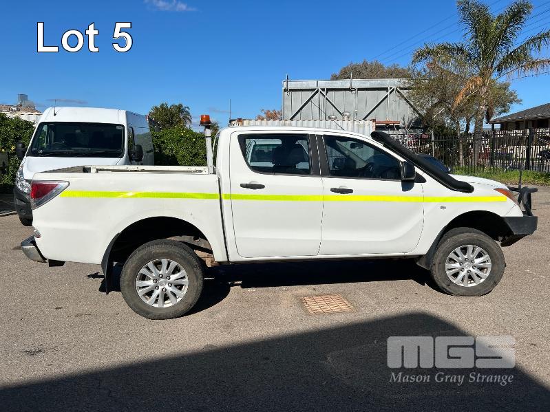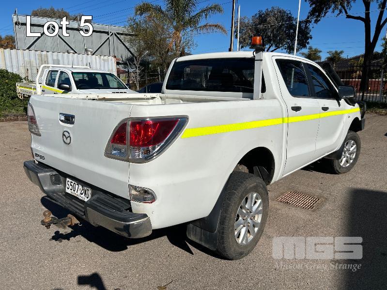 2012 MAZDA BT-50 DUAL CAB UTE 4x4 REG: S507 BWD (SA) (EXPIRED) VIN: MM0UP0YF100146297 ENG: P5AT1071834 ODO: 281,183kms SHOWING 5 CYLINDER TURBO DIESEL, 6 SPEED MANUAL TRANSMISSION, WHITE DUCO, 4 DOORS, 5 SEAT, 4x4 ABS, AIR BAG, AIR CON, ALLOY WHEELS, BLUETOOTH, BULL BAR, CD PLAYER, CENTRAL LOCKING, CRUISE CONTROL, DECALS, IMMOBILISER, POWER STEERING, POWER WINDOWS, SPARE WHEEL, TOW BAR, TRACTION CONTROL, SNORKEL AIR INTAKE 2 WAY RADIO KEY #18 (WITH PAPERS, WITH 1 KEY/S, WITH OWNER'S MANUAL)