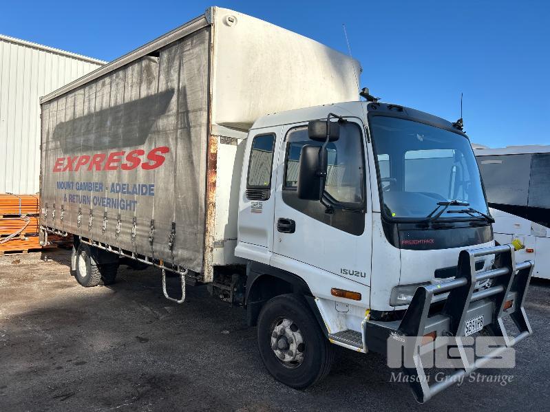 2005 ISUZU F3 FRR550 525 LONG FREIGHTPACK, SINGLE CAB TAUTLINER 4x2 REG: SB 91 PB (SA) VIN: JALFRR34N47000758 ODO: 888,020kms SHOWING GVM: 10,400kg GCM: 16,000kg SITEC 220 6 CYLINDER TURBO DIESEL, 6 SPEED MANUAL, WHITE DUCO, 2 DOORS, 3 SEAT, AIR CON, BULL BAR, STEEL RIMS, TAUTLINER BODY SIZE: 6400 x 2500mm DOUBLE REAR DOORS, AIR DAM, FULL SET OF GALV STEEL GATES, 9.5 R17.5 TYRES SPARE WHEEL. KEY #16 (WITH PAPERS, WITH 1 KEY/S)