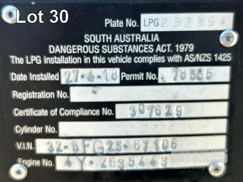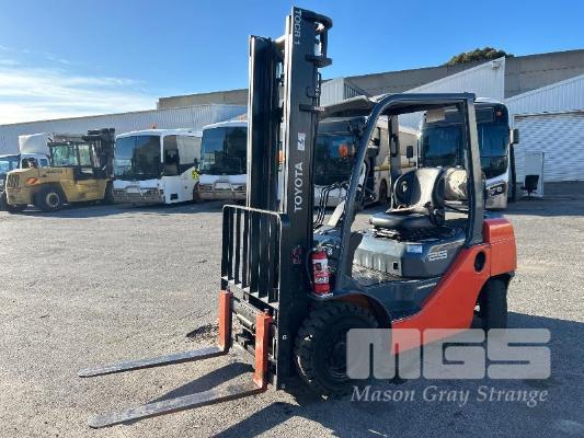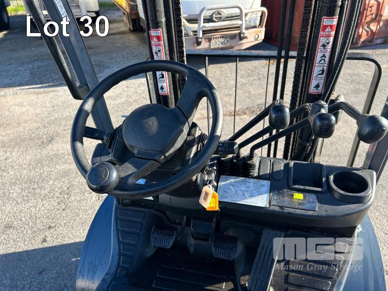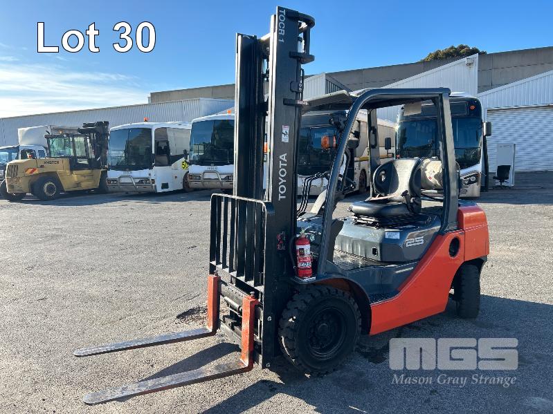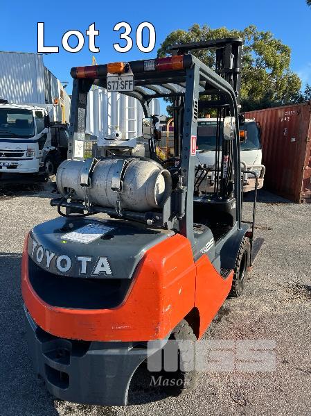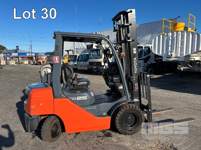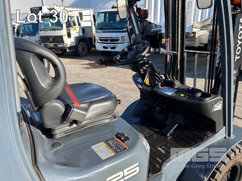 2017 TOYOTA FORKLIFT, MOD: 32-8FG25 S.N: 308FG25-67106 4 CYLINDER DUAL FUEL ENGINE HOURS: 808 SHOWING 2 STAGE CLEAR VEIW MAST, SIDESHIFT OPS SYSTEM, SOLID TYRES, RATED: 2,270kg 2 X KEYS EXCELLENT CONDITION. KEY # 19