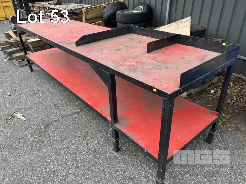 WORKSHOP BENCH, 3650 x 920 x 1000mm (H), PLATE STEEL TOP, STEEL FRAME, 2 TIER WITH 100mm VICE