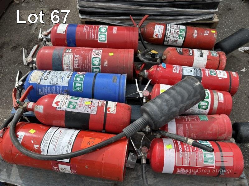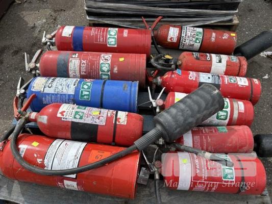 11 x FIRE EXTINGUISHERS, ASSORTED TYPES & SIZES INCLUDING WATER, C02, DRY POWDER, ETC 1 x PALLET