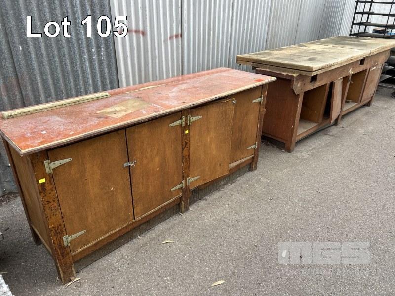 2 x TIMBER WORK BENCHES, 1800 x 550 x 800mm & 2450 x 800 x 850mm (H)