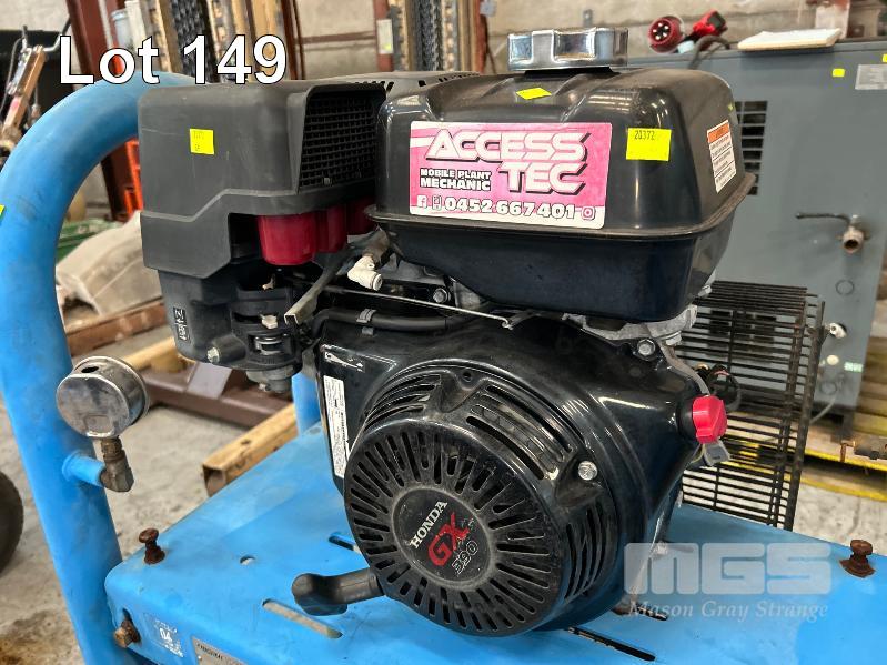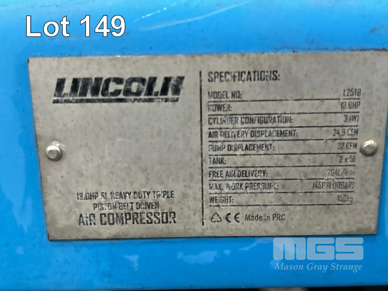 AIR COMPRESSOR, LINCOLN MOD: L25TB BELT DRIVEN POWERED BY HONDA GX390 PETROL MOTOR 130 HP, TANK SIZE: 2 x 5 LITRE