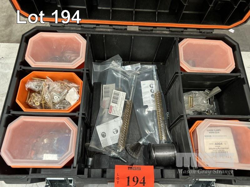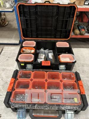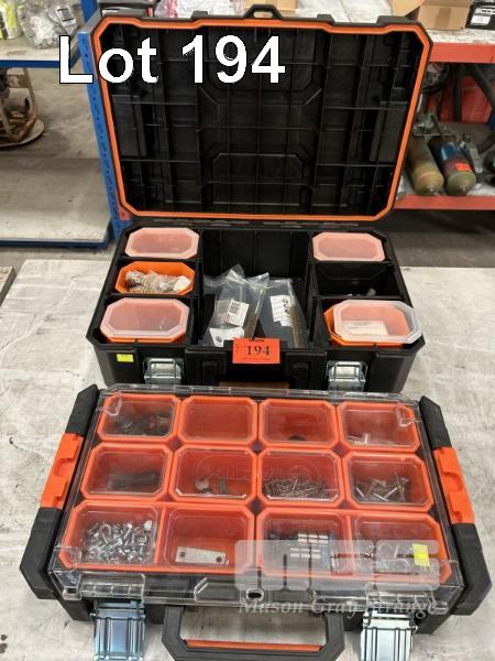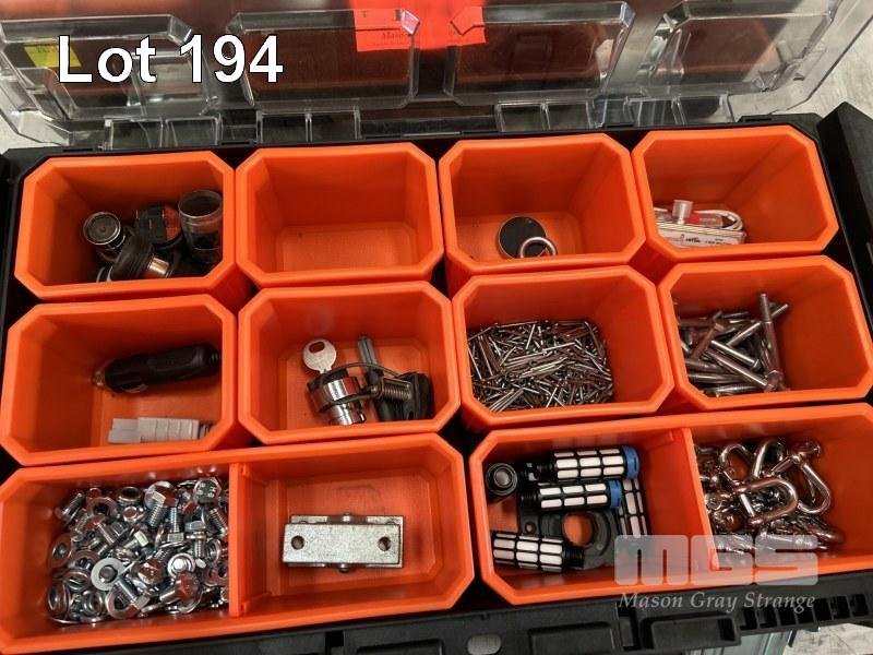 2 x MULTI COMPARTMENT STORAGE KITS, TACTIX INCLUDING STAINLESS STEEL D-SHACKLES, BRASS BRUSHES, FITTINGS, ETC