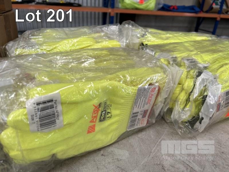 PERSONNEL SAFETY EQUIPMENT INCLUDING WORK GLOVES 12 x PAIRS FORCE 360, CUT RESISTANT, FPR200, SIZE: XXL, 48 x PAIRS PRO SAFETY HI VIS ARAX, 24 @ SIZE: 11 & 24 @ SIZE: 7 12 x PAIRS RIGGERS SUEDE, SIZE: S 10 x PAIRS PRO SAFETY, BHT, SIZE: 8 10 x PAIRS SAFETY GLASSES, SCOPE 3 x BOXES BELT CLIPS & 1 x BAG MILLERS TIE OFF SLINGS