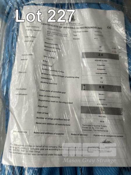 2 x LIFTING SLINGS, NOBLE & SONS 8T x 2m, BLUE AS NEW