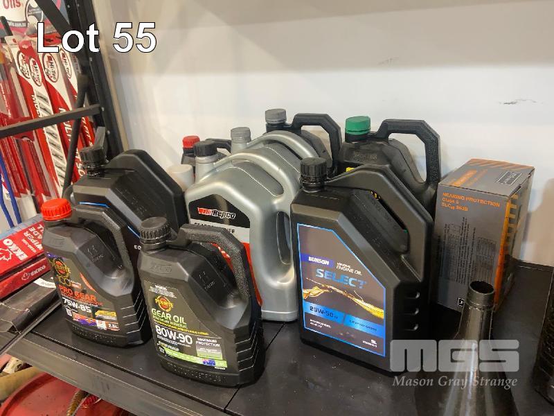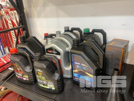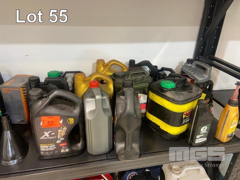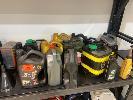 CONTENTS OF SHELF LARGE QTY ASSORTED OIL CONTAINERS (MOST PART FULL)