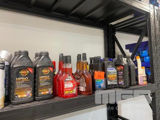 CONTENTS OF SHELF INJECTOR CLEANER, POWER STEERING FLUID, STOP SMOKE, RADIATOR FLUSH ETC.