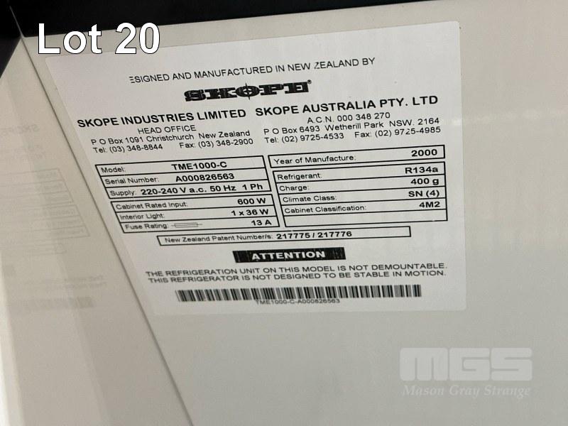 DISPLAY FRIDGE, SKOPE 2 x GLASS DOORS 2200 x 1100 x 700mm 240V, SINGLE PHASE