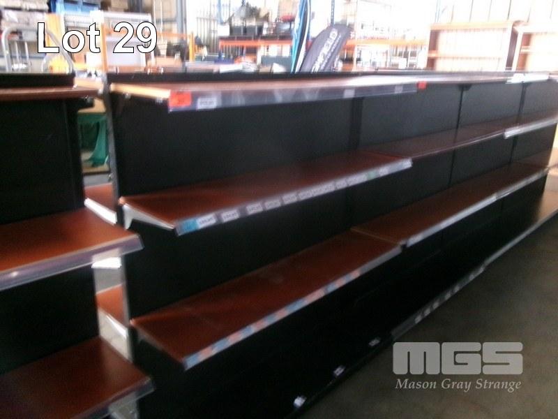 DISPLAY SHELVING, METAL & TIMBER, DOUBLE SIDED, 4 TIER, MOBILE