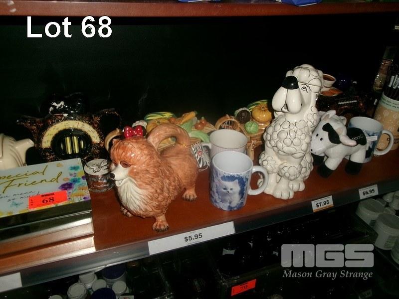 15 x ASSORTED ORNAMENTS, MUGS, DOGS, TEAPOT, SPECIAL FRIEND MIRRORED BOX, FRUIT BARROW, ETC