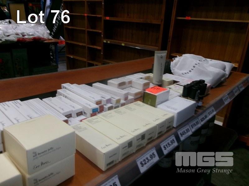 92 (APPROX) x ASSORTED PRODUCTS INCLUDING EYE PENCILS, MASCARA, ALL COVER POTS, ORGANIC LIPSTICKS, CHARLES & LEE WASH & MOISTURISER, OLIVE OILS, WHITE TEA RETINOL, ETC 1 x SHELF