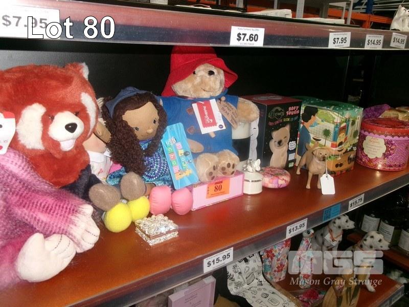 ASSORTED PLUSH TOYS & ORNAMENTS, MONKEYS, DOLLS, PADDINGTON BEAR, LED LIGHT, CANDLES, TEA CUPS, ETC
