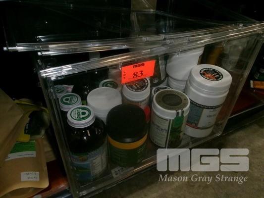 ASSORTED PRODUCTS INCLUDING SPIRULINA, MORINGA SUPER GREENS, COLLOIDAL MINERALS, GREENS DAILY DAILY BLEND, HEALTH WISE, VEGAN PROTEIN, GLYCINE, ETC 1 x PLASTIC CONTAINER