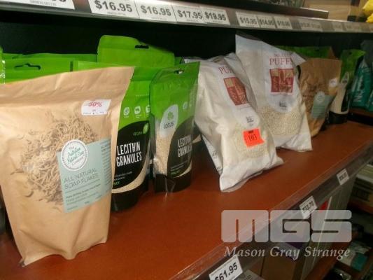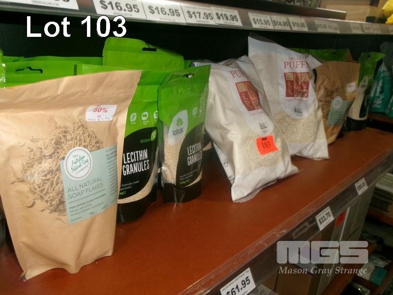 ASSORTED PRODUCTS INCLUDING GLUTEN FLOUR, QUINOA FLAKES, SOAP FLAKES, MILLET PUFFS, LECITHIN GRANULES, LUPIN FLOUR 1 x SHELF