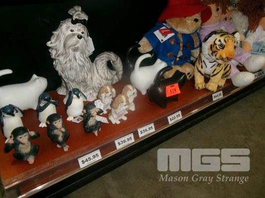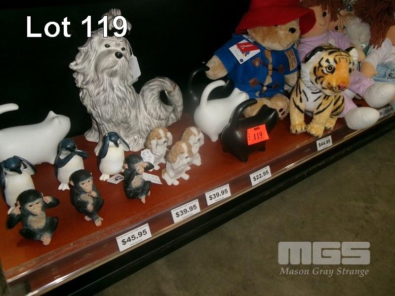 7 x PLUSH TOYS & 11 x ANIMAL ORNAMENTS, 1 x SHELF