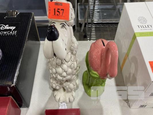 2 x FIGURINES, DOG & FLAMINGO