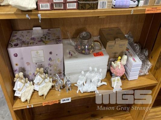 ASSORTED ORNAMENTS, TEA INFUSERS, FIGURINES, GLASS TEAPOT, SUN CATCHERS, SNOOPY 1 x SHELF