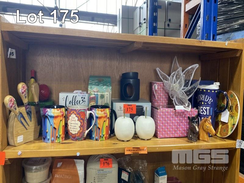 ASSORTED ORNAMENTS, CHEESE SET, CUPS, APPLES, OIL BURNERS, HORSES 1 x SHELF