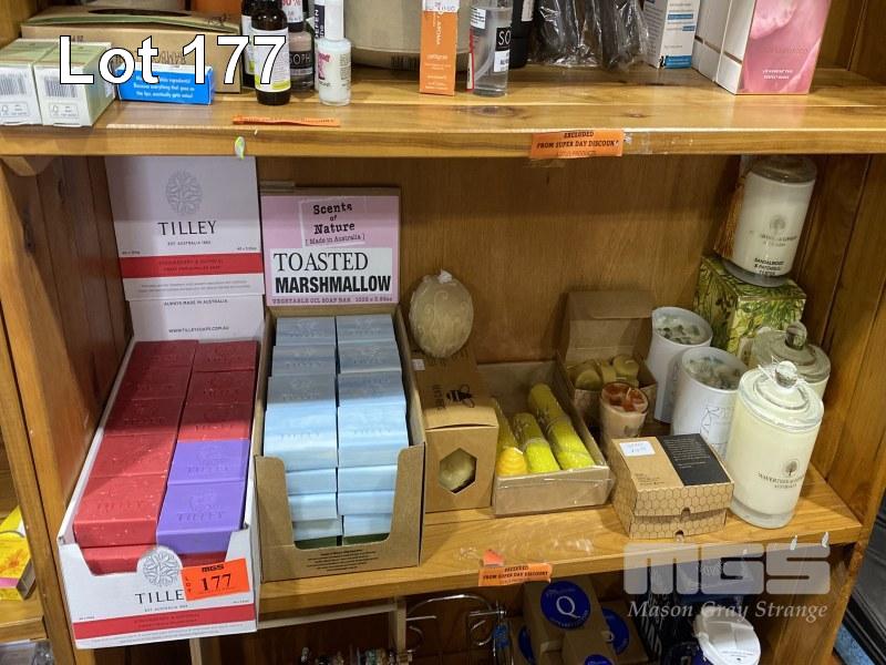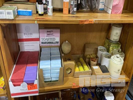 ASSORTED SOAPS & CANDLES, 1 x SHELF