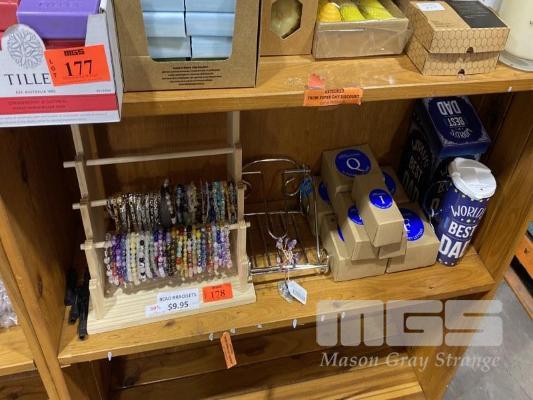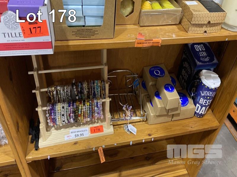 ASSORTED BRACELETS, ALPHABET LETTER & MUG 1 x SHELF