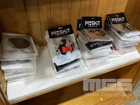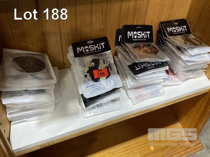 62 (APPROX) x ASSORTED MOSKIT MASKS 1 x SHELF