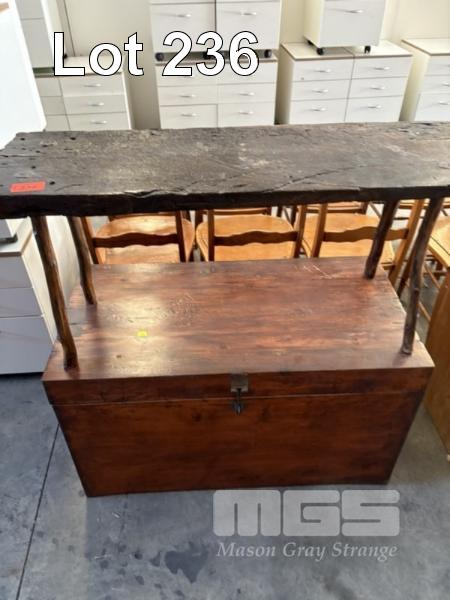VINTAGE PINE TRUNK AND HARDWOOD SEAT