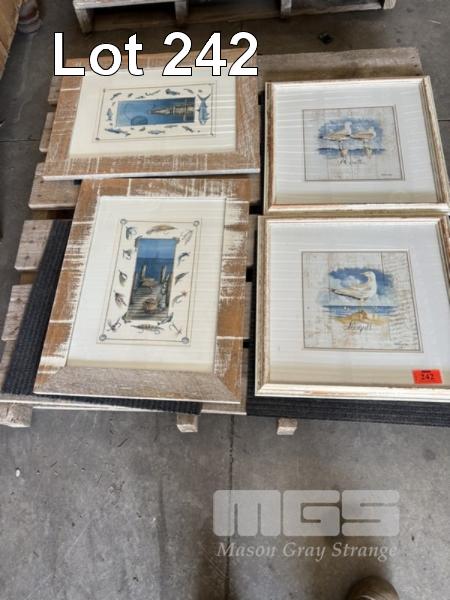 2 x FRAMED PAINTINGS (FISHING), 2 x PAINTINGS SEAGULLS BY PASCAL CESSOU 1 x PALLET