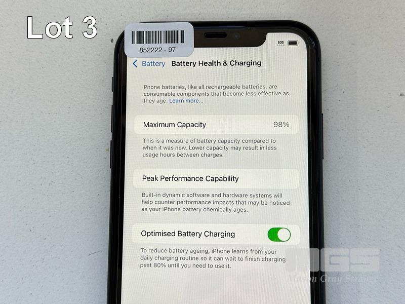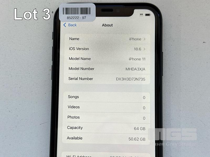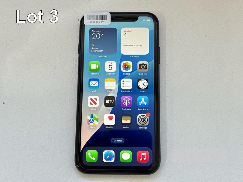 APPLE iPHONE 11, 64GB, MODEL MHDA3X/A, A2221, BLACK, BATTERY HEALTH 98% (NO CABLE, NO CHARGER) S/N:DX3H3D7JN735